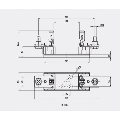 Etichete: Bază siguranțe, PK 1 M10-M10 DC 1000V 1p